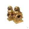 Chiens de Foo (石獅 : Protection) sur socle en résine doré (h17cm)