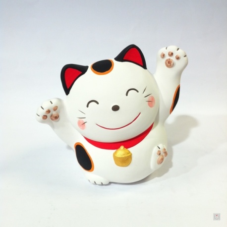 Maneki neko 招き猫 EN FORME en argile blanche 10cm