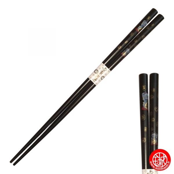 Baguettes japonaises noires MANEKi NEKO blancs (22.5cm)