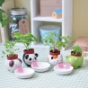 Le mignon Peropon lape l’eau de la soucoupe et la plante pousse sur son dos comme par