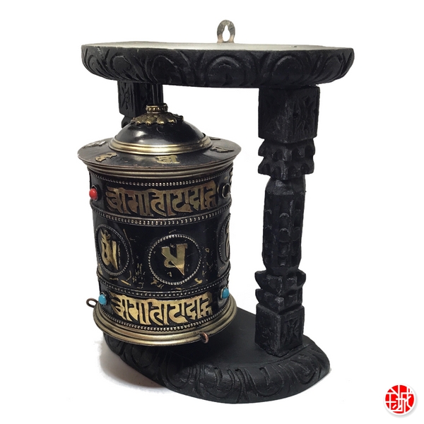 Moulin à prière de table et mural en laiton (h19.5cm)