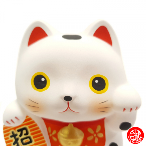 Tirelire Maneki Neko blanc en argile "onéko-san"