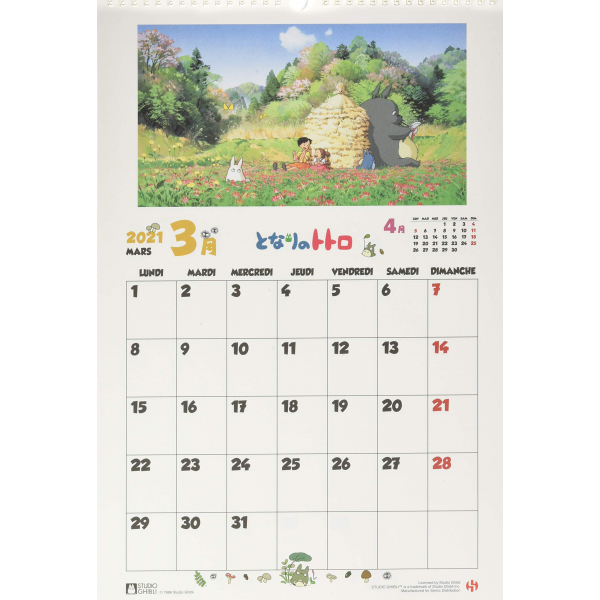 Calendrier 2021 Français - Mon voisin Totoro© (29*44cm)