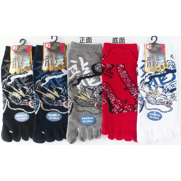 足袋 Soquettes à 5 orteil japonaises 23cm pour zori, geta, tongs et sandales ou pour tenir plus chaud en hivers ! Extensibles, elle taille du 39 au 44 (25 à 28cm en taille japonaise) Motif DRAGON 龍. 5 coloris disponibles.